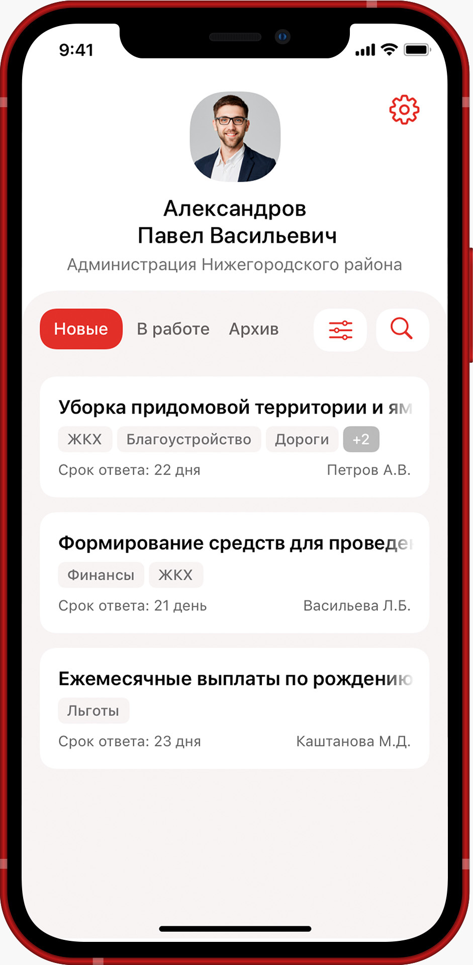 Функционал для сотрудников государственных органов - ответственных за обработку обращений.